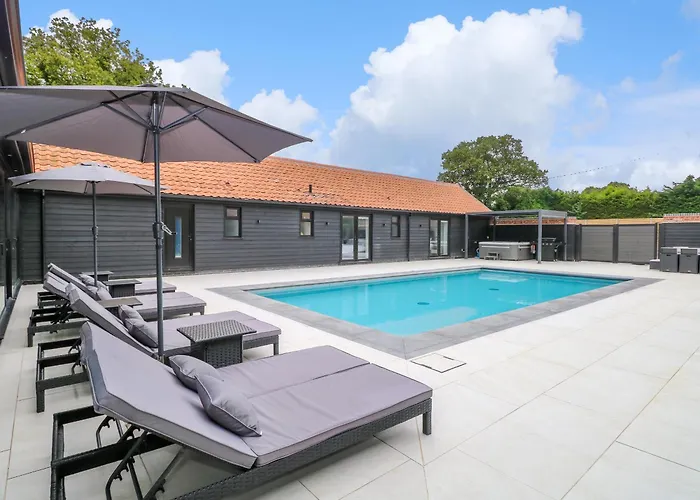 4 غرف نوم موفرة في County Farm Barn التي تبعد اقل من 13 دقائق سيراً عن حديقة فيرهايفن وودلاند المائية. الضيوف يمكنهم الانتعاش بالحوض الساخن المتوفرة في الموقع.